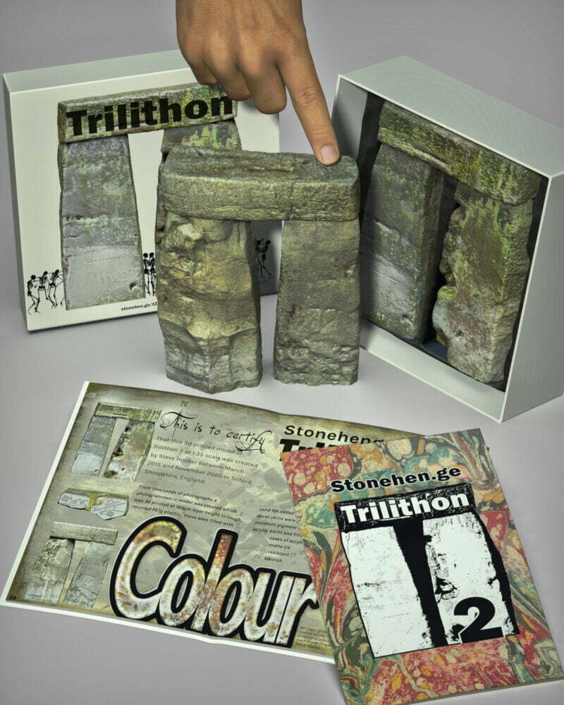 Here are 1:76 (H: 84mm 3⅓in) being the smallest, 1:12 (H:522mm 20½in) the largest. Trilithon Two megalith models in full colour.