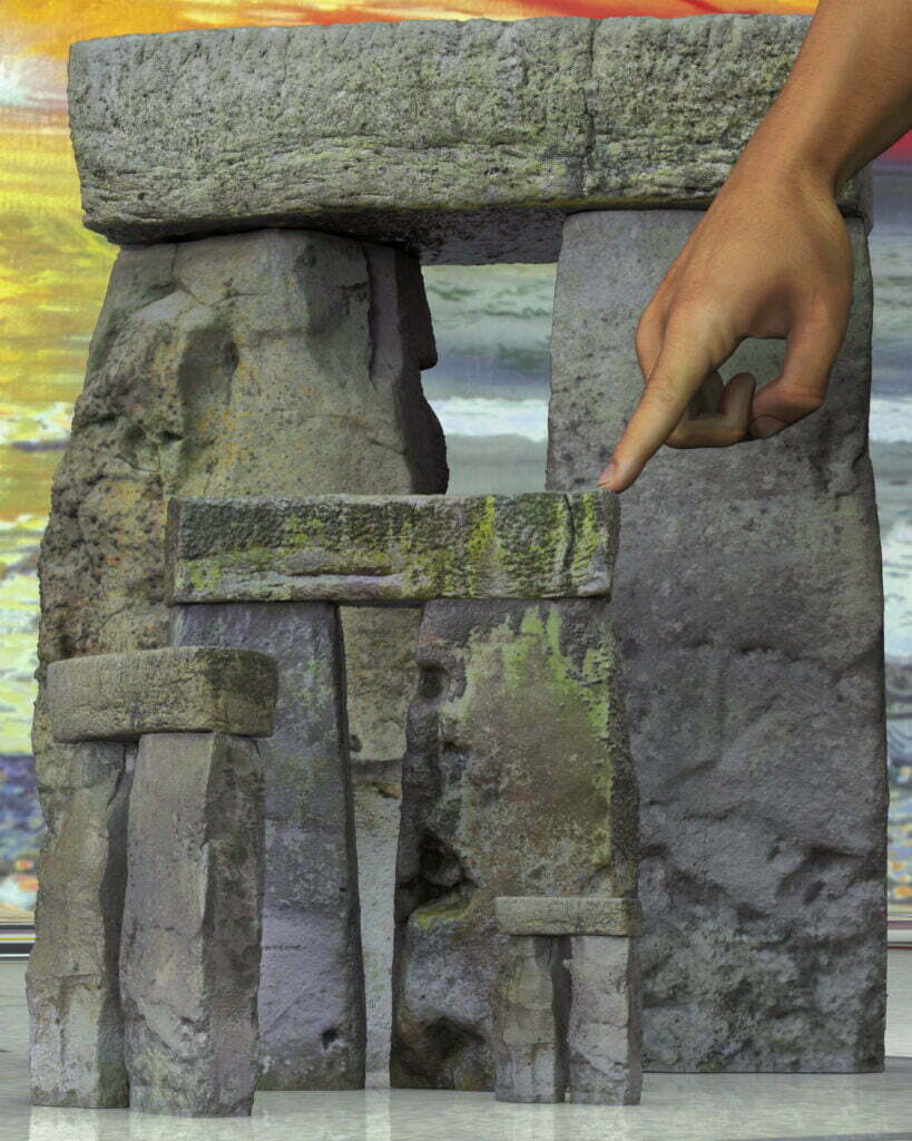 Here are 1:76 (H: 84mm 3⅓in) being the smallest, 1:12 (H:522mm 20½in) the largest. Trilithon Two megalith models in full colour.