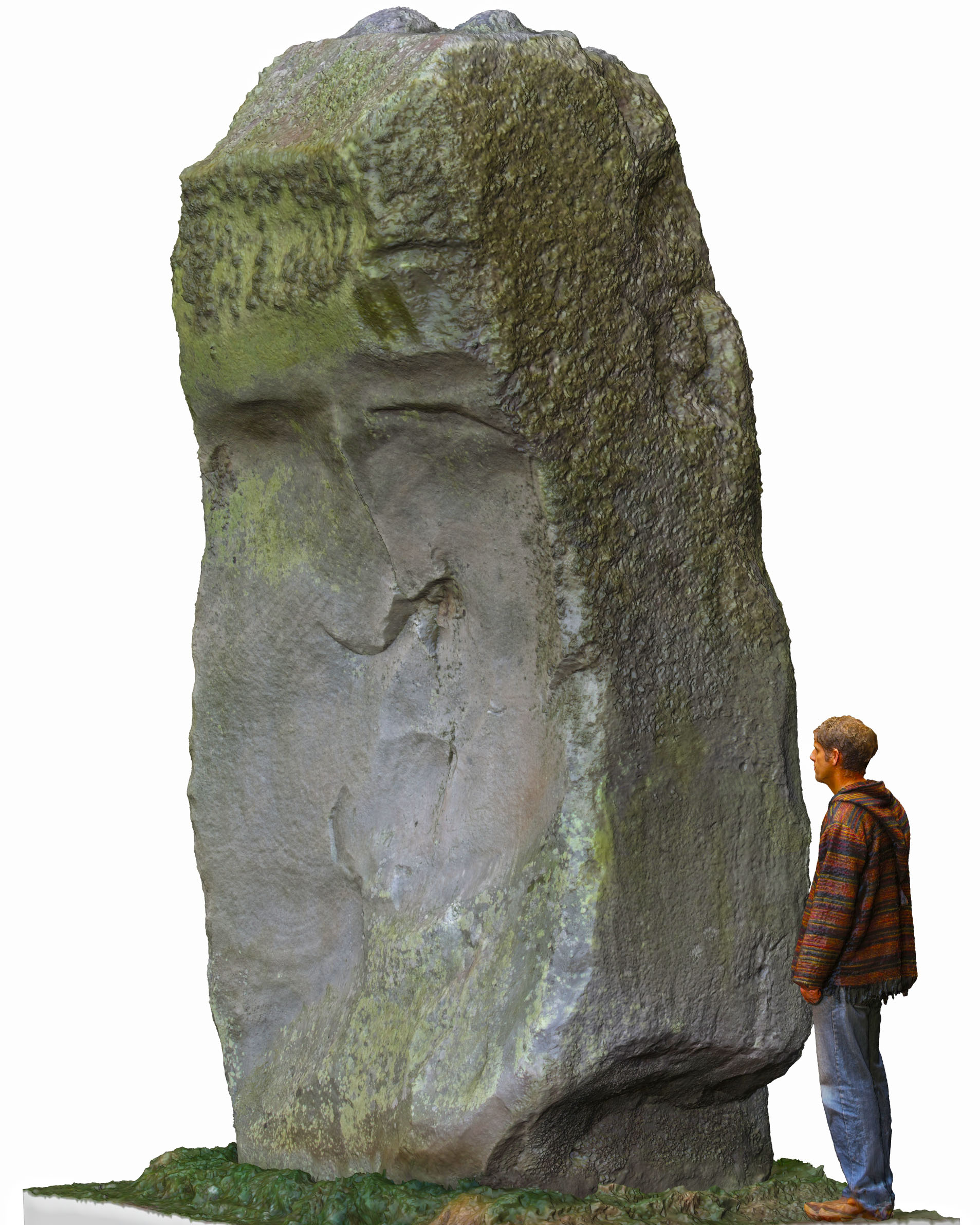 Several views around Stonehenge’s Stone 28 with the correct colours of moss, lichen and rotted sarsen.
